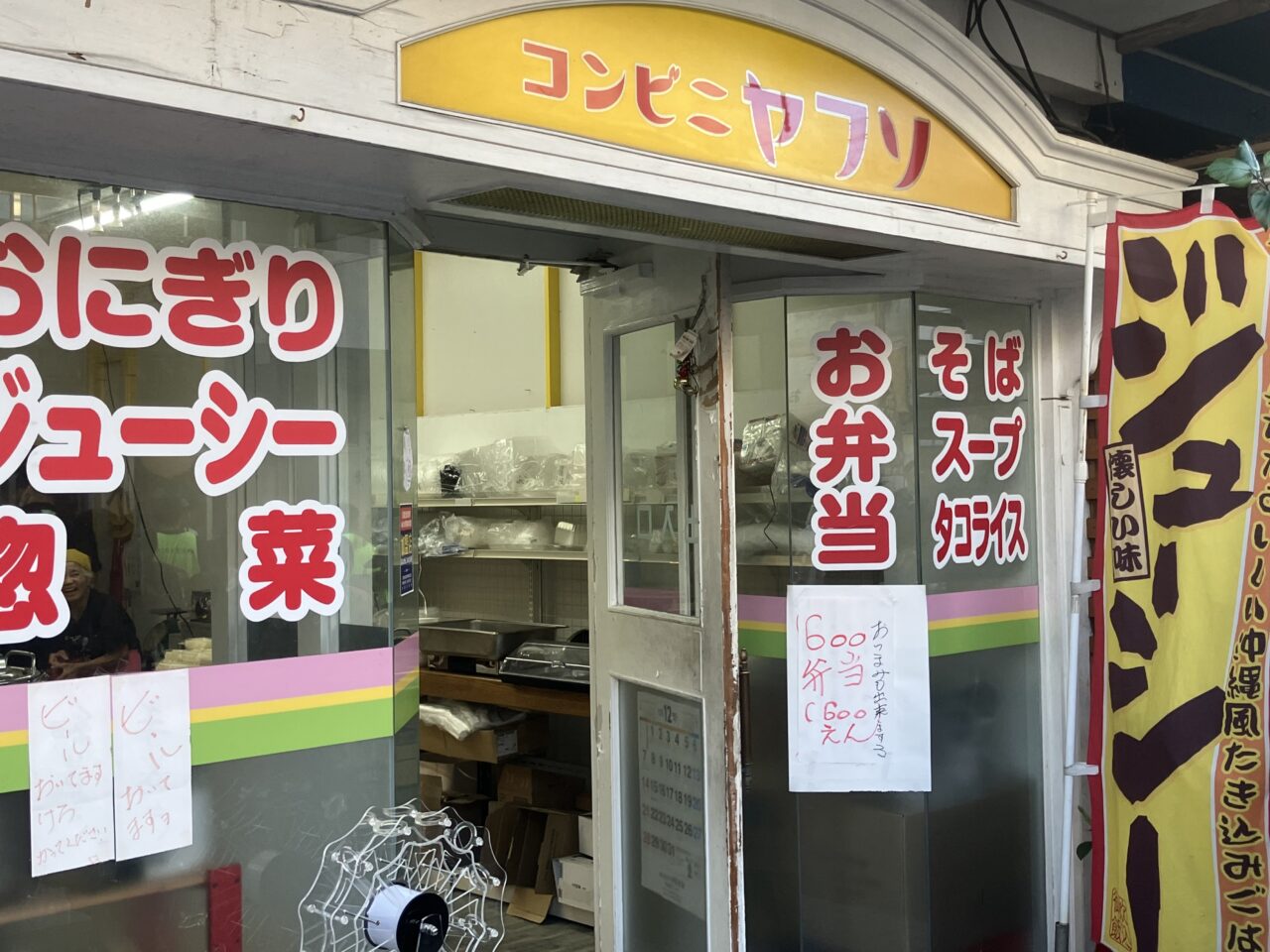 お店のおばちゃんは気さくな方で、会話を楽しみながら買い物しました。店舗入り口の張り紙も独特で味のあるコンビニでした(笑)