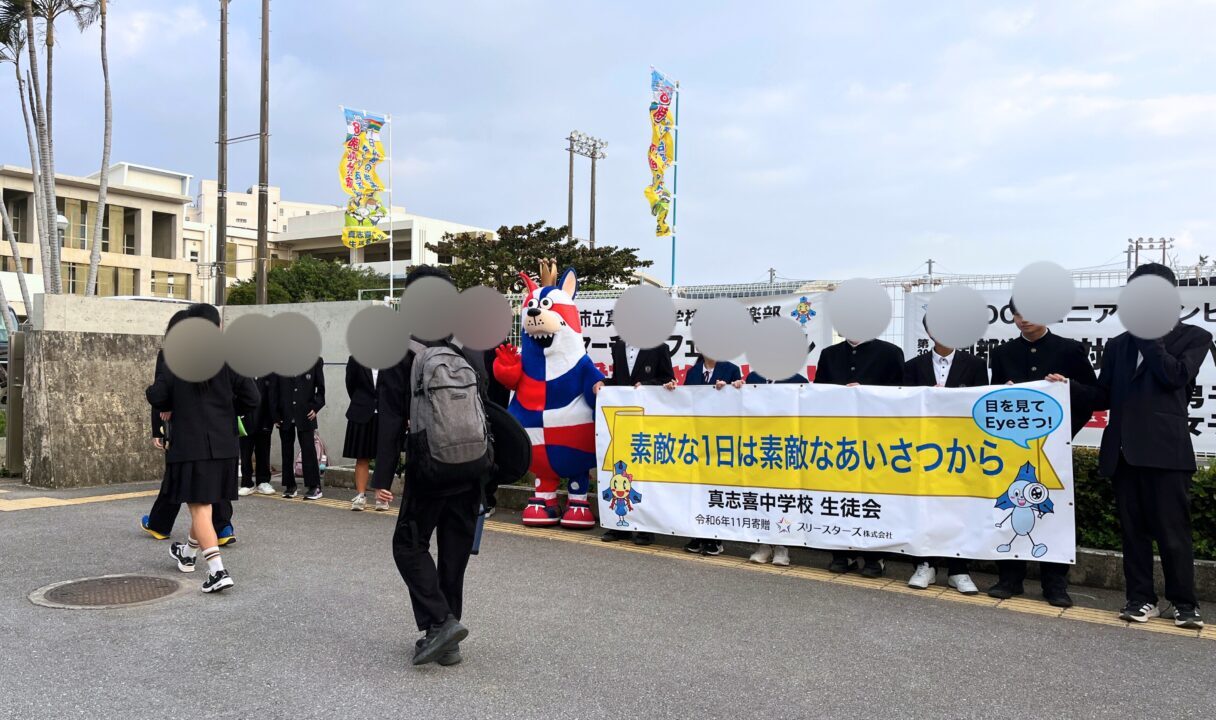 去る2026年1月に実施された挨拶運動では、宜野湾市の市立中学校と県立高校を含めて7校にゴーディが登場!朝から元気な挨拶がかわされたようです!