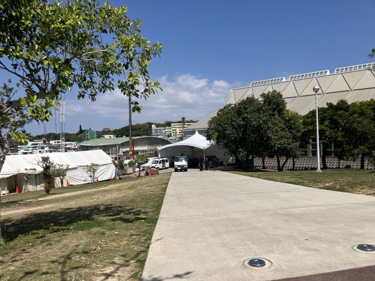 浦添市陸上競技場(ANA SPORTS PARK 浦添)は、老朽化に伴う大規模な新施設整備工事が行われております。沖展会場は同公園と隣接しておりますので、会場へお越しの際は係員の誘導に従い、注意突起の看板などをご確認のうえ安全には充分お気をつけください。